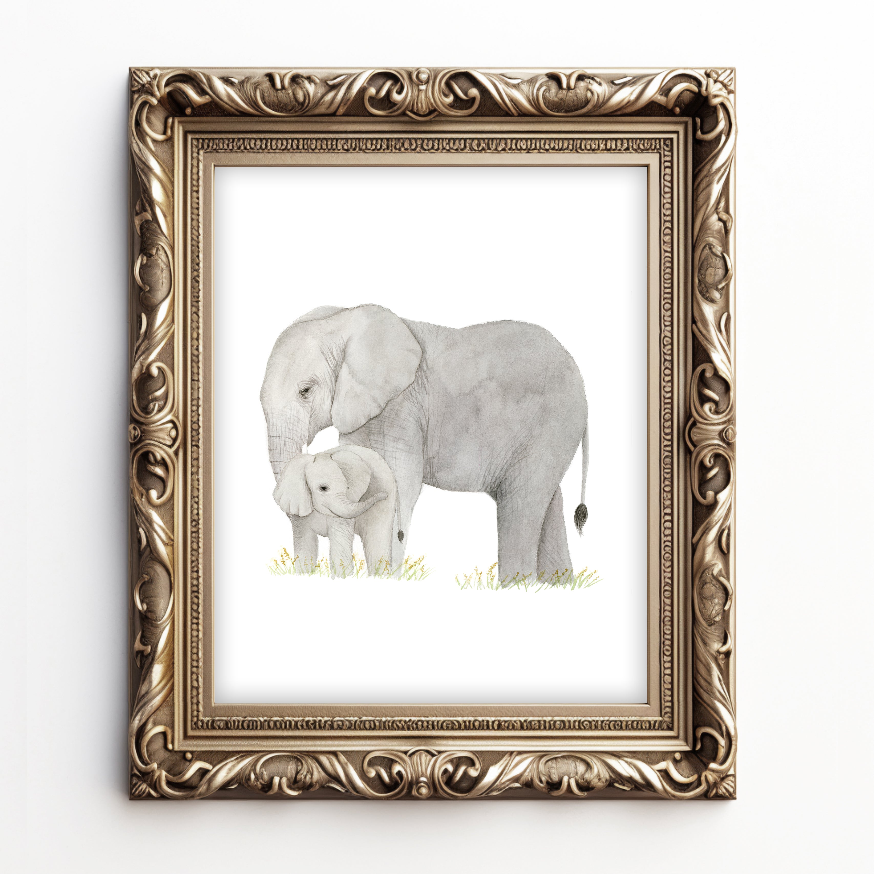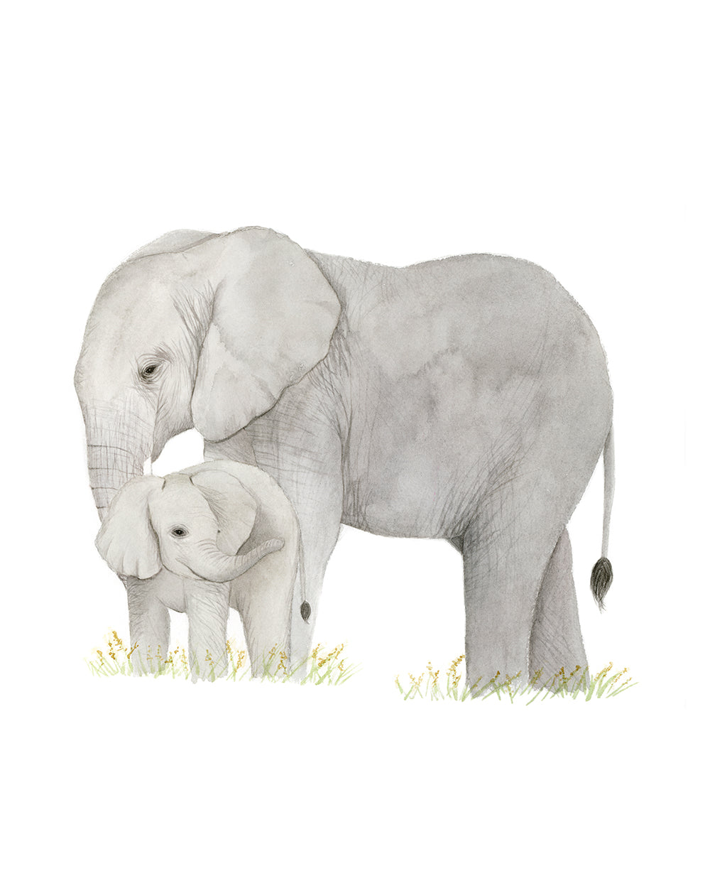 Elephant and Baby Watercolor Painting - Art Print