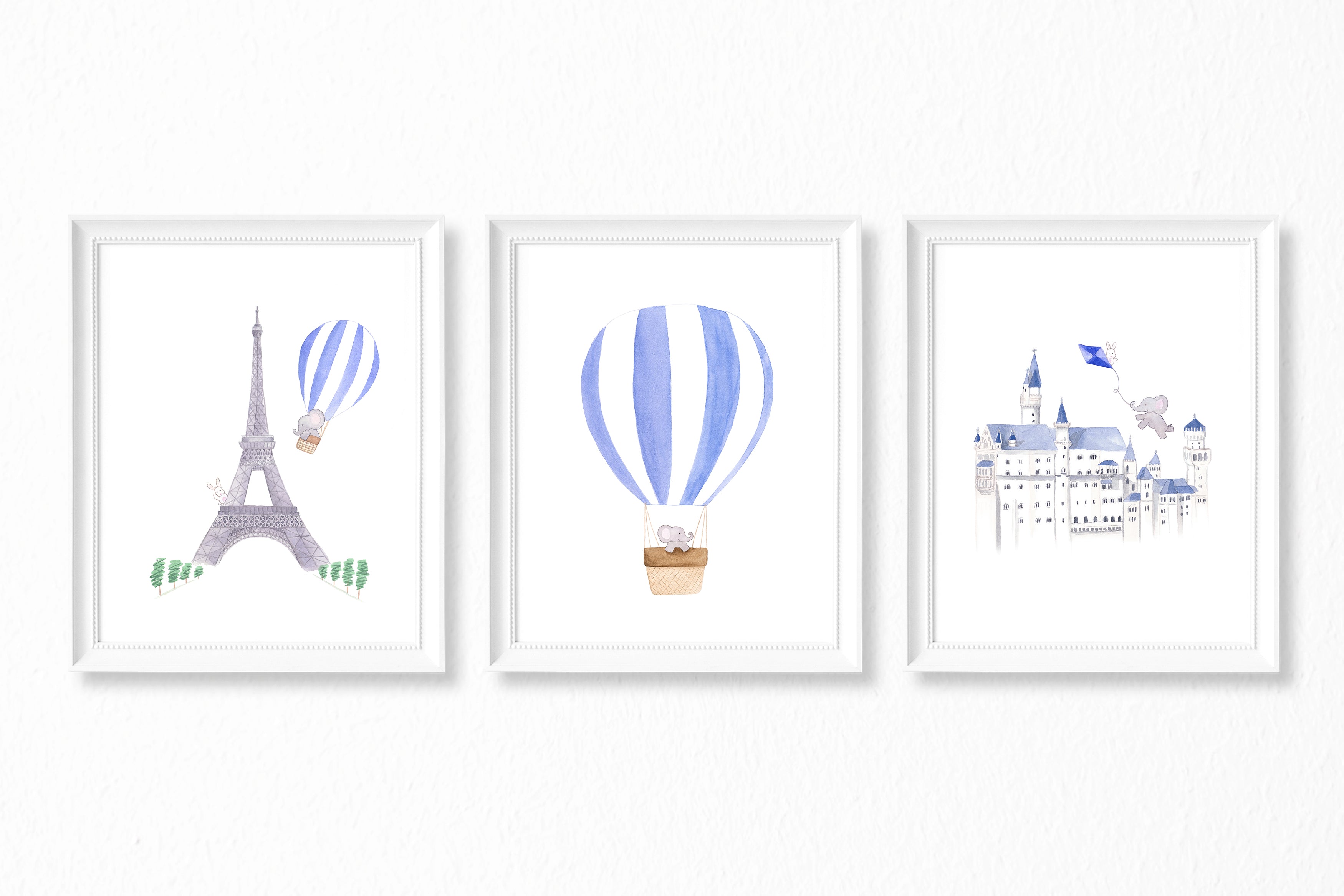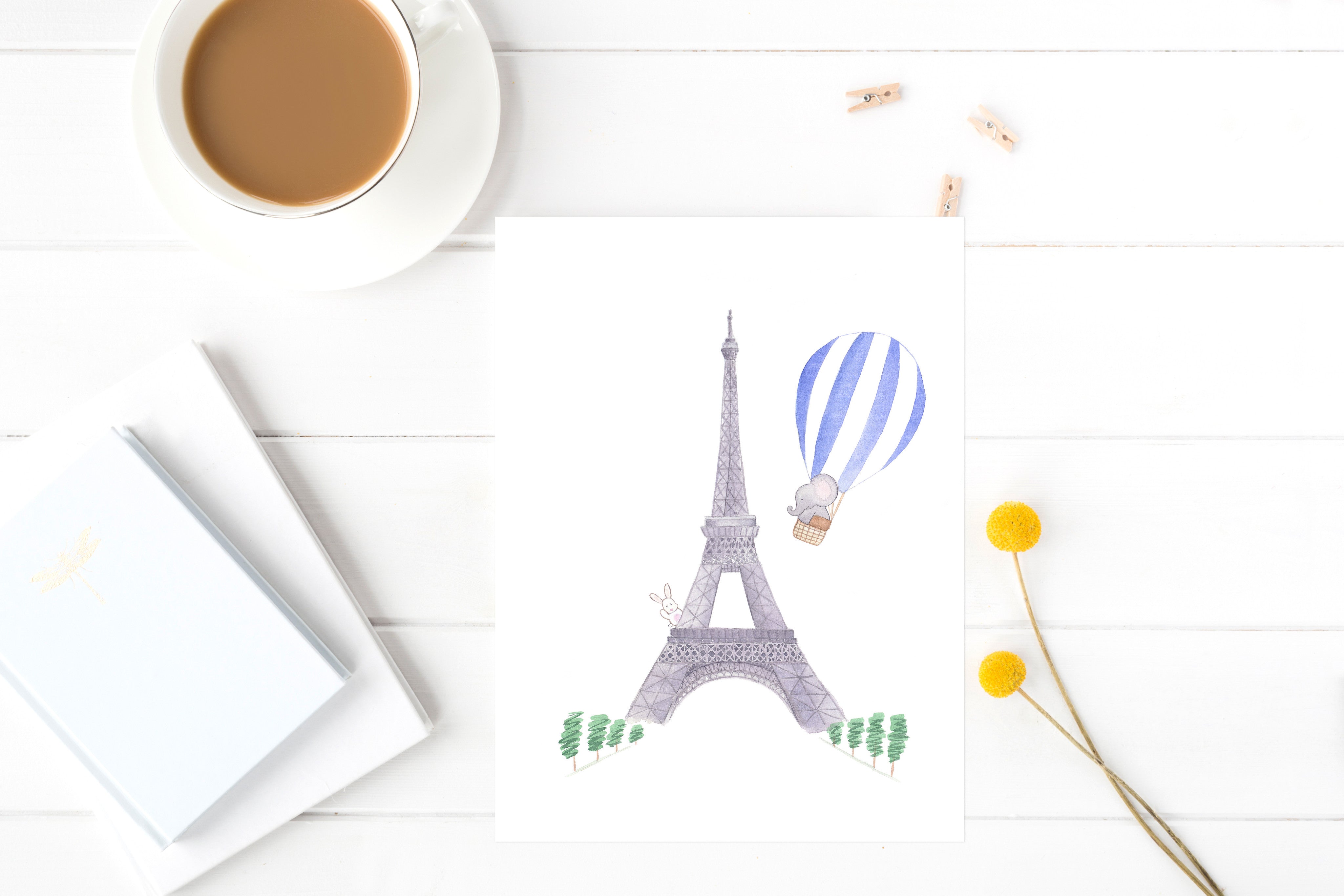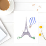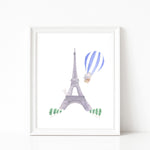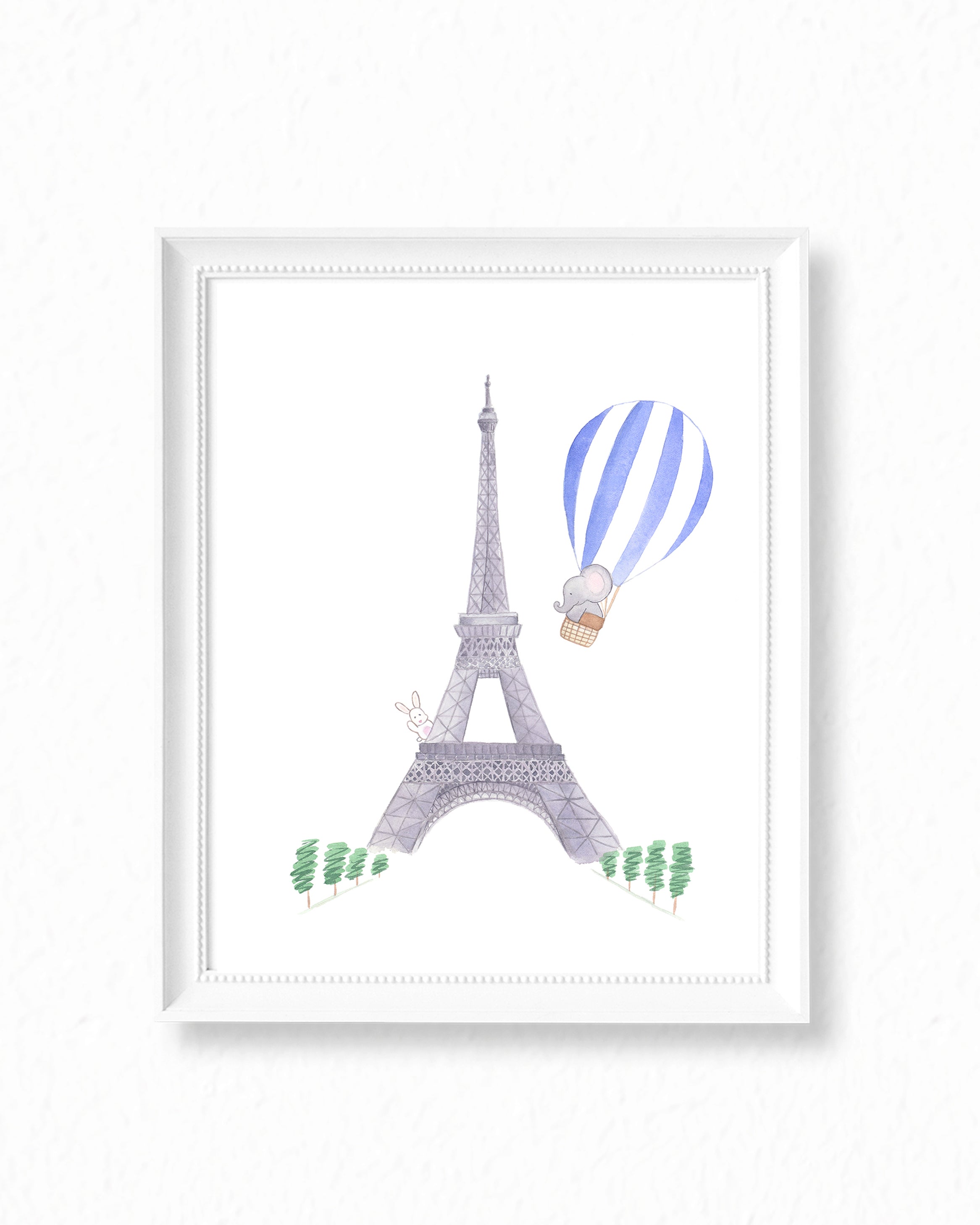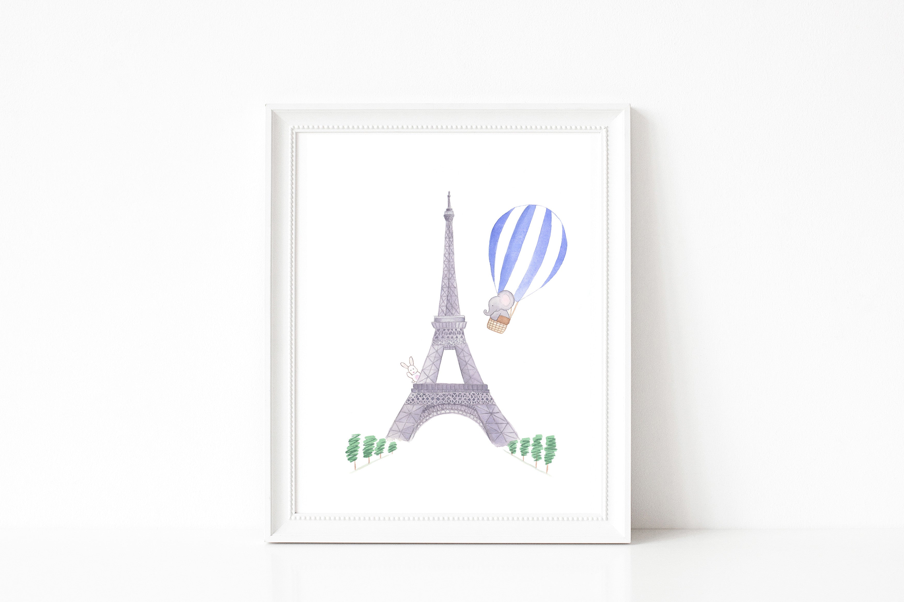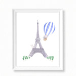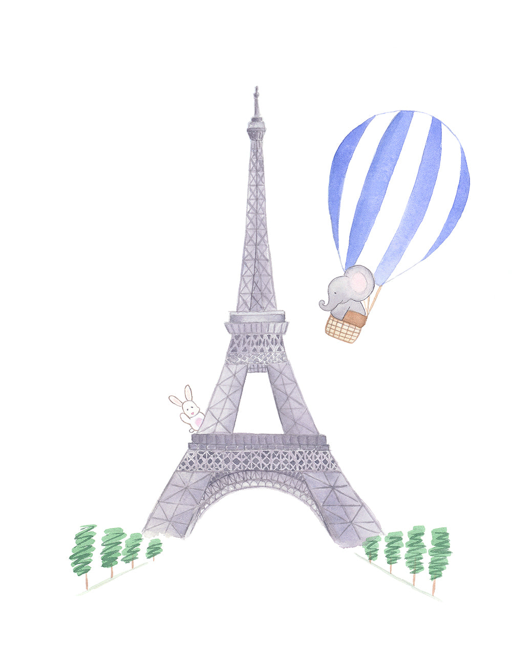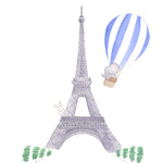 Nursery Watercolor Painting Baby Elephant in Paris - Art Print