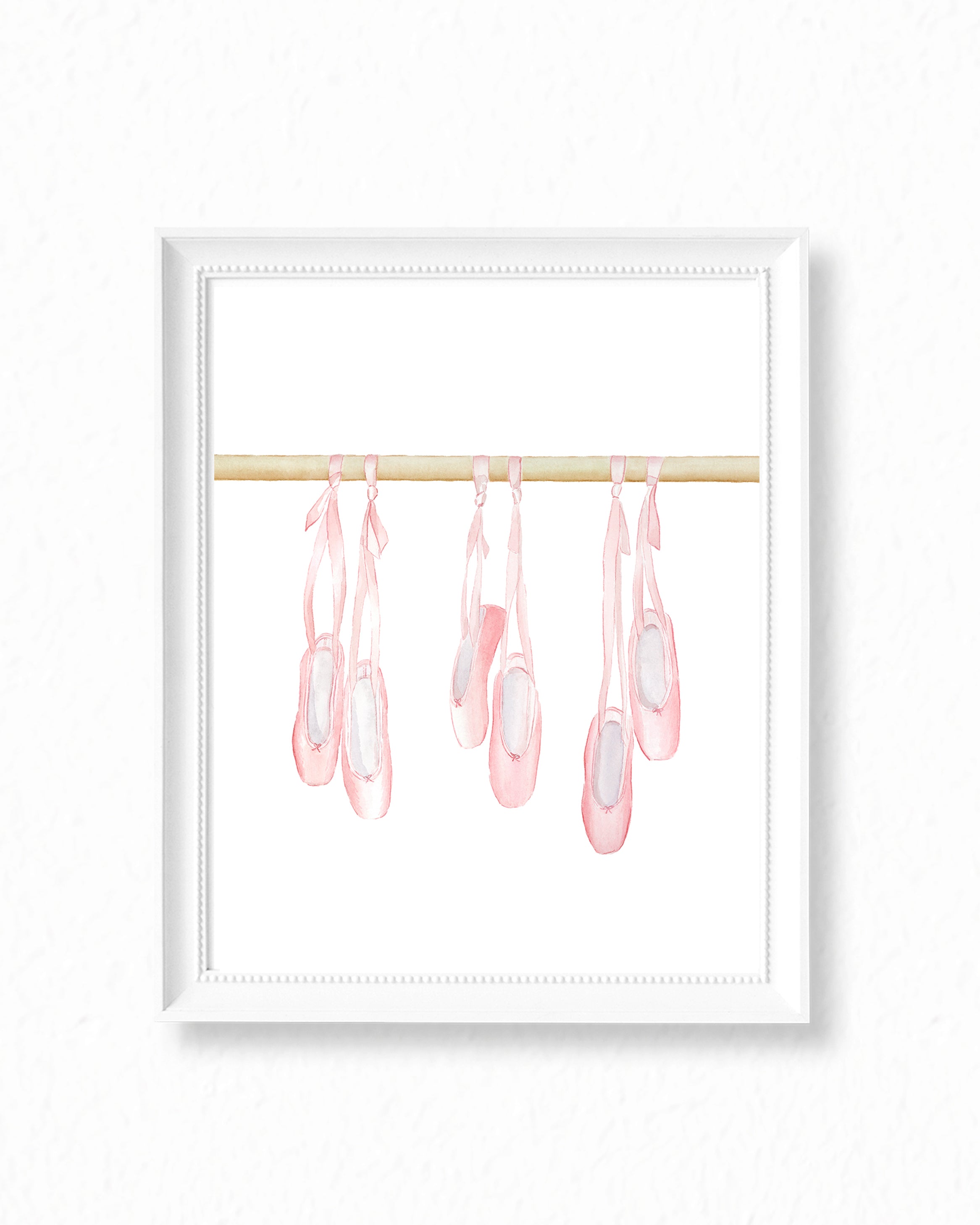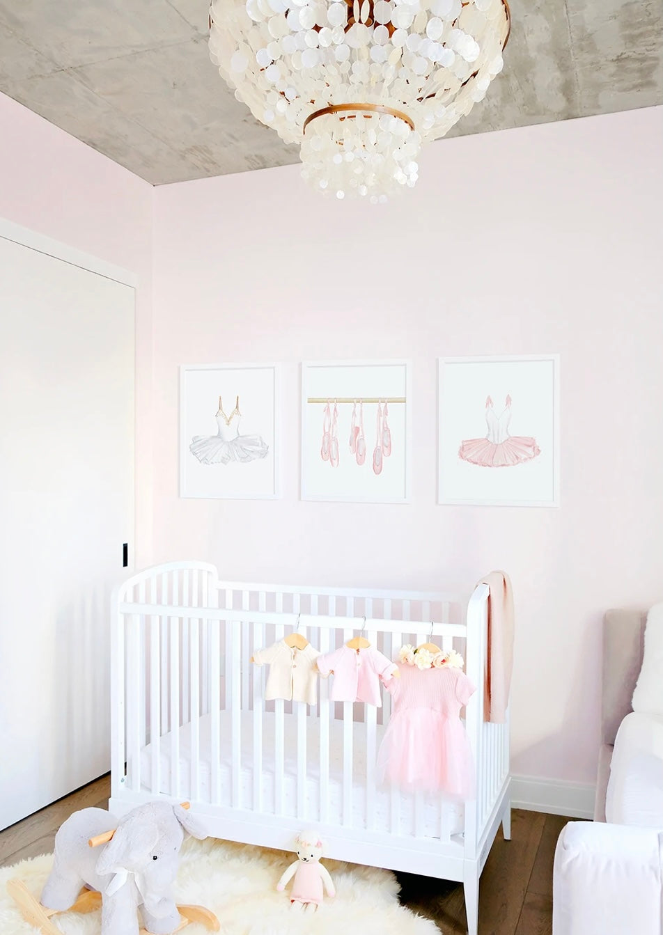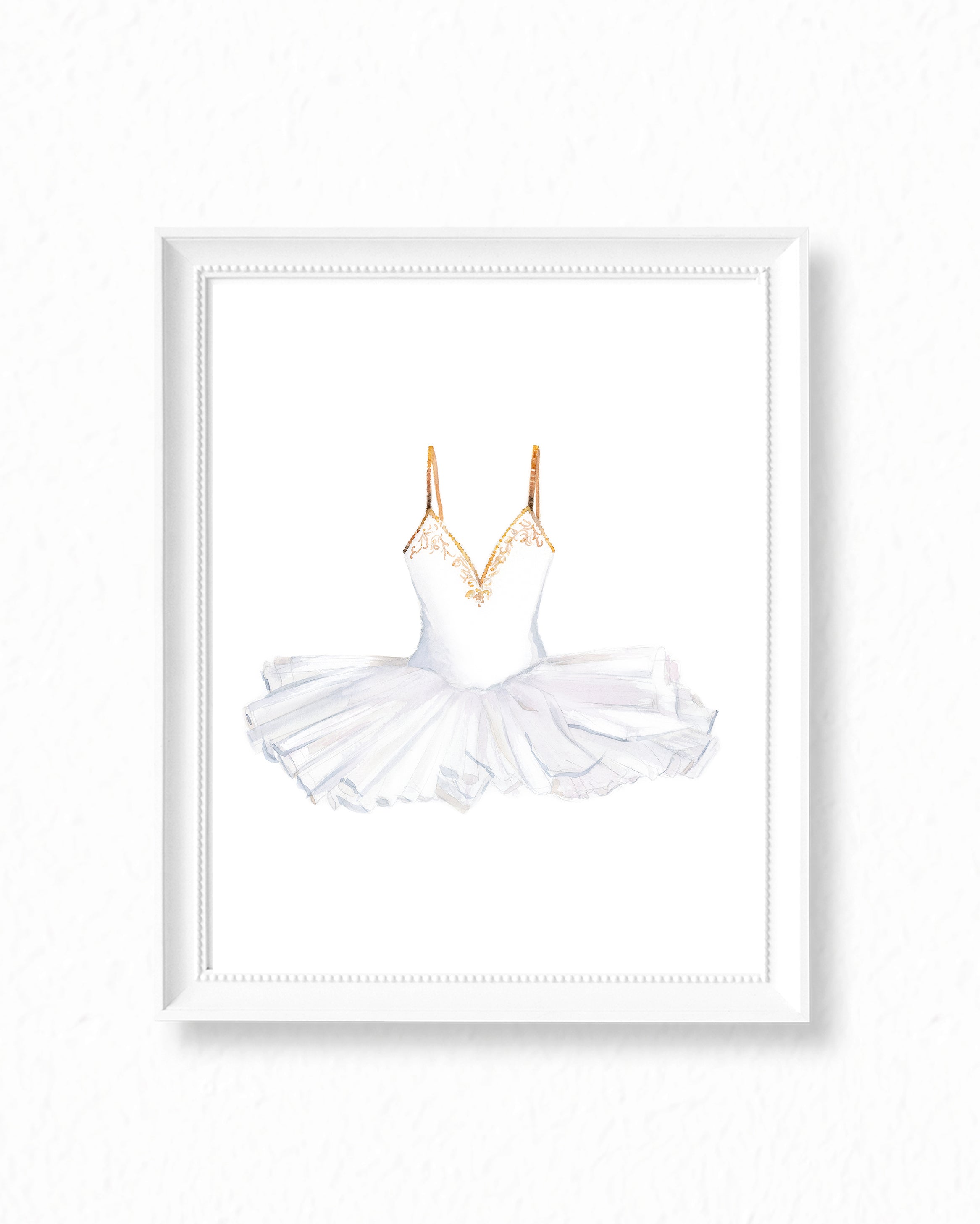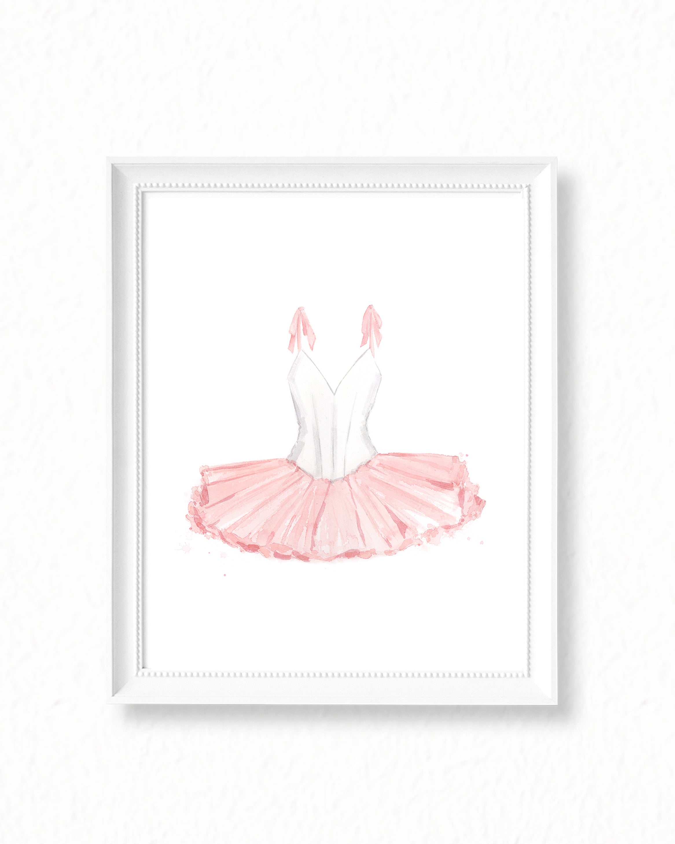 Set of 3 watercolor ballet themed paintings. Your little ballerina will love this set of pink and white ballet paintings for her room. The white tutu has gold details fit for the most elegant swan princess and the pink tutu is flowy and dreamy, perfect for your tiny dancer.