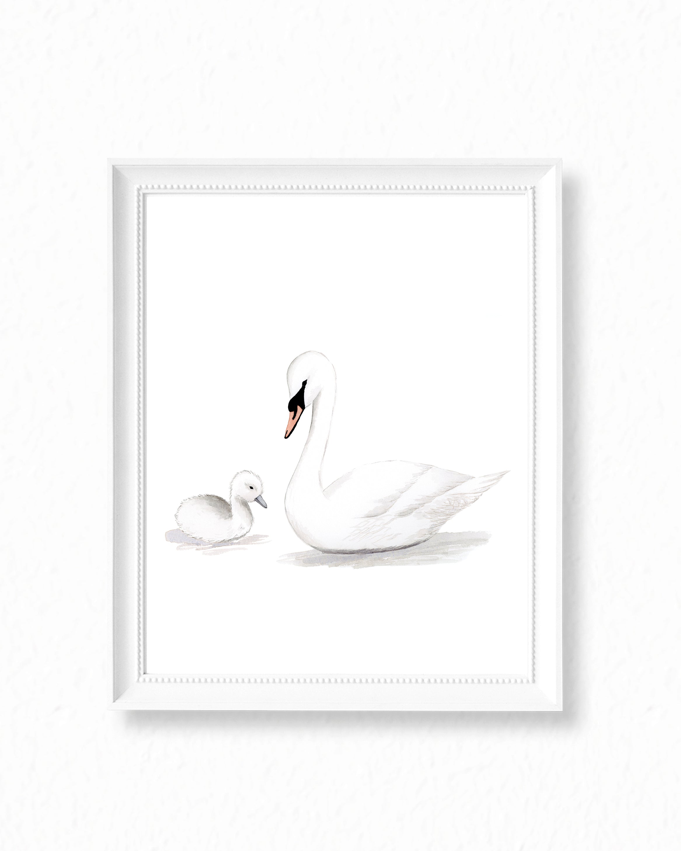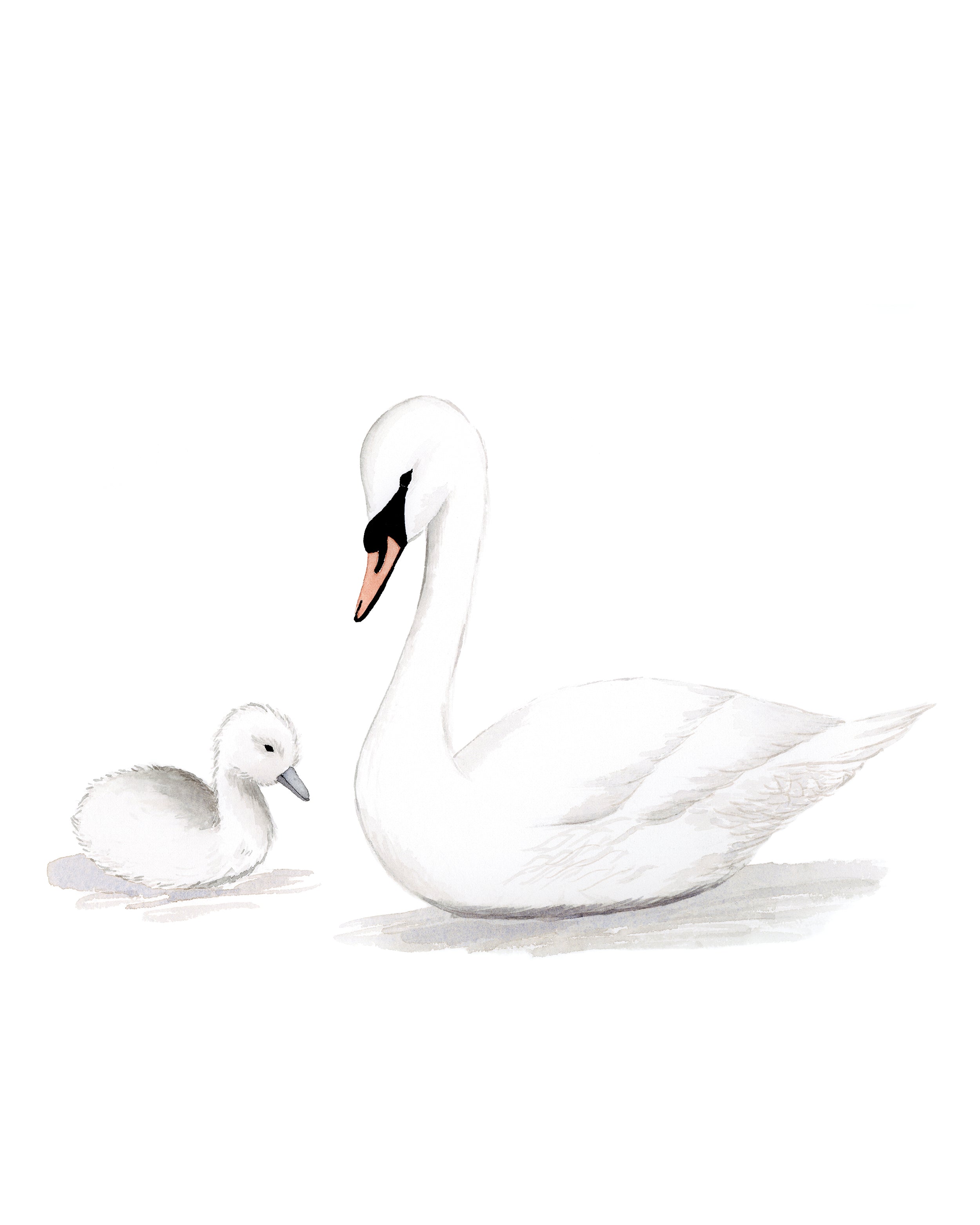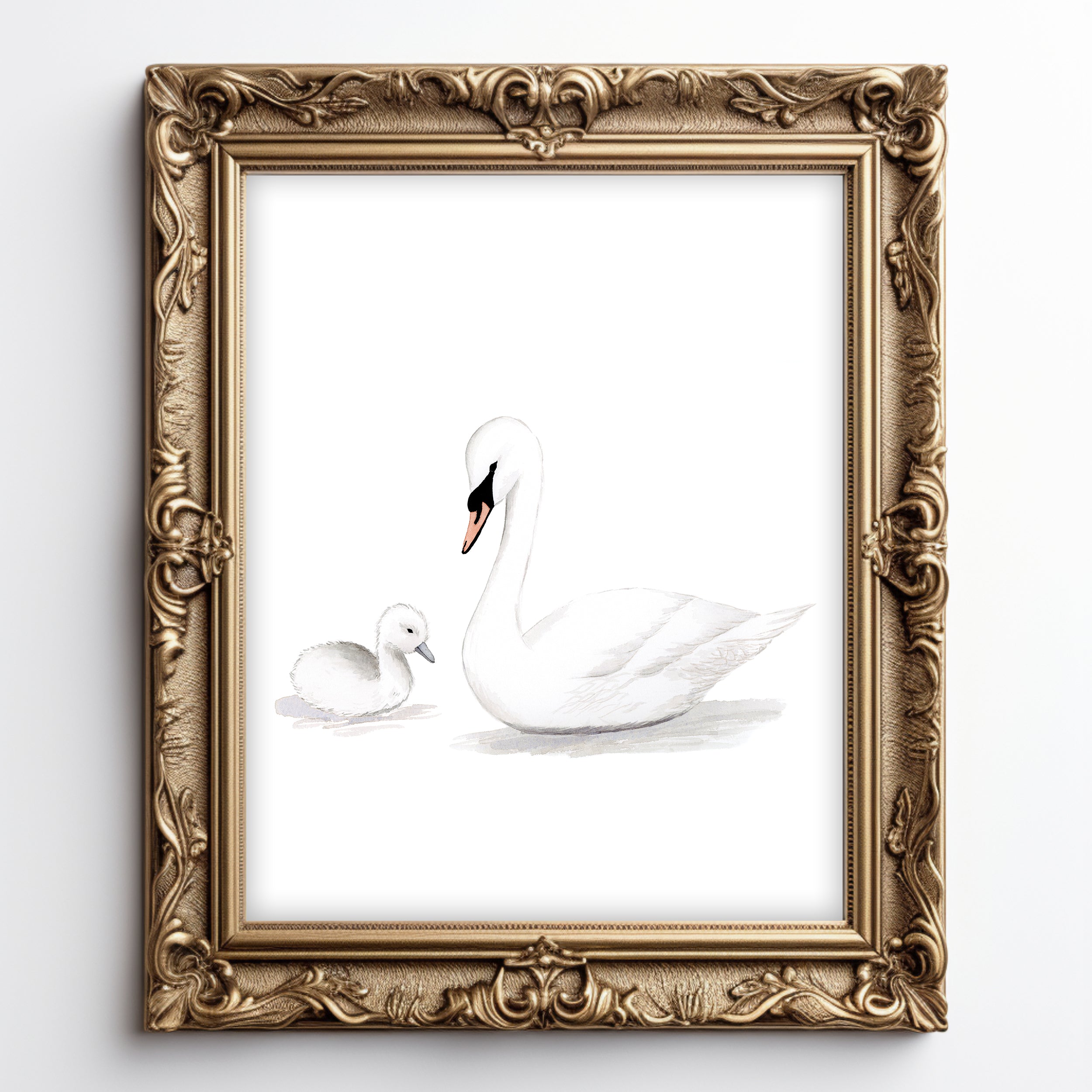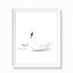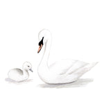 Swan and Baby Duckling Watercolor Painting - Art Print