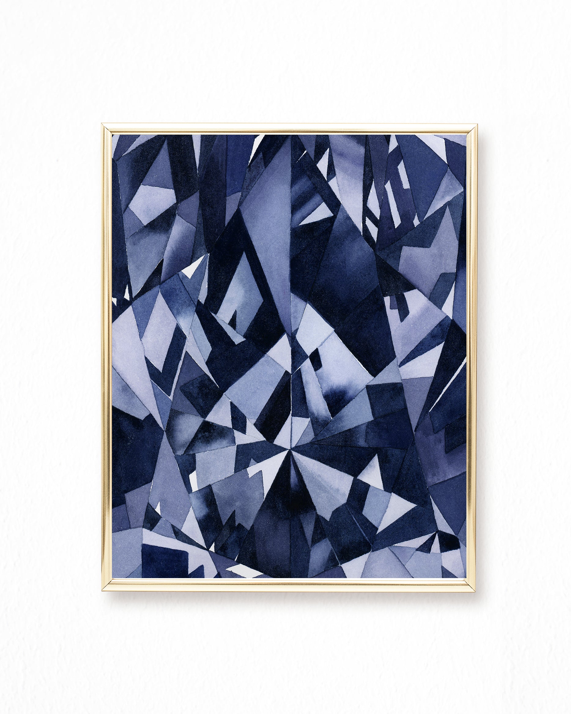 Watercolor abstract painting of a deep purple amethyst. 1 watercolor art print.