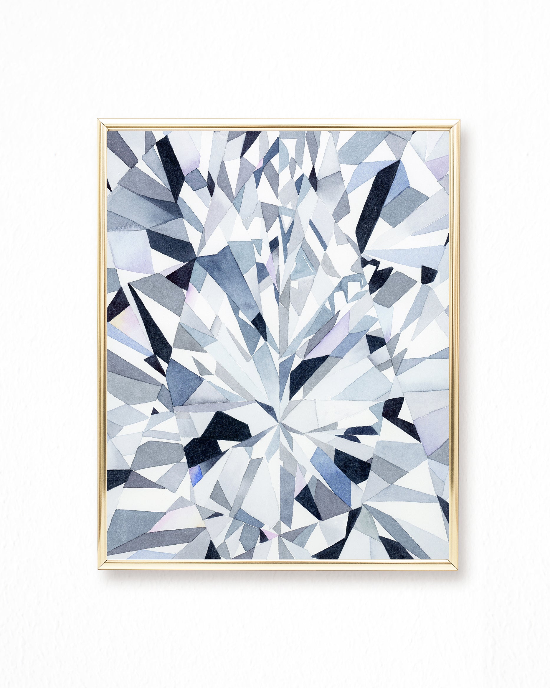 Watercolor abstract painting of a diamond. 1 watercolor art print.