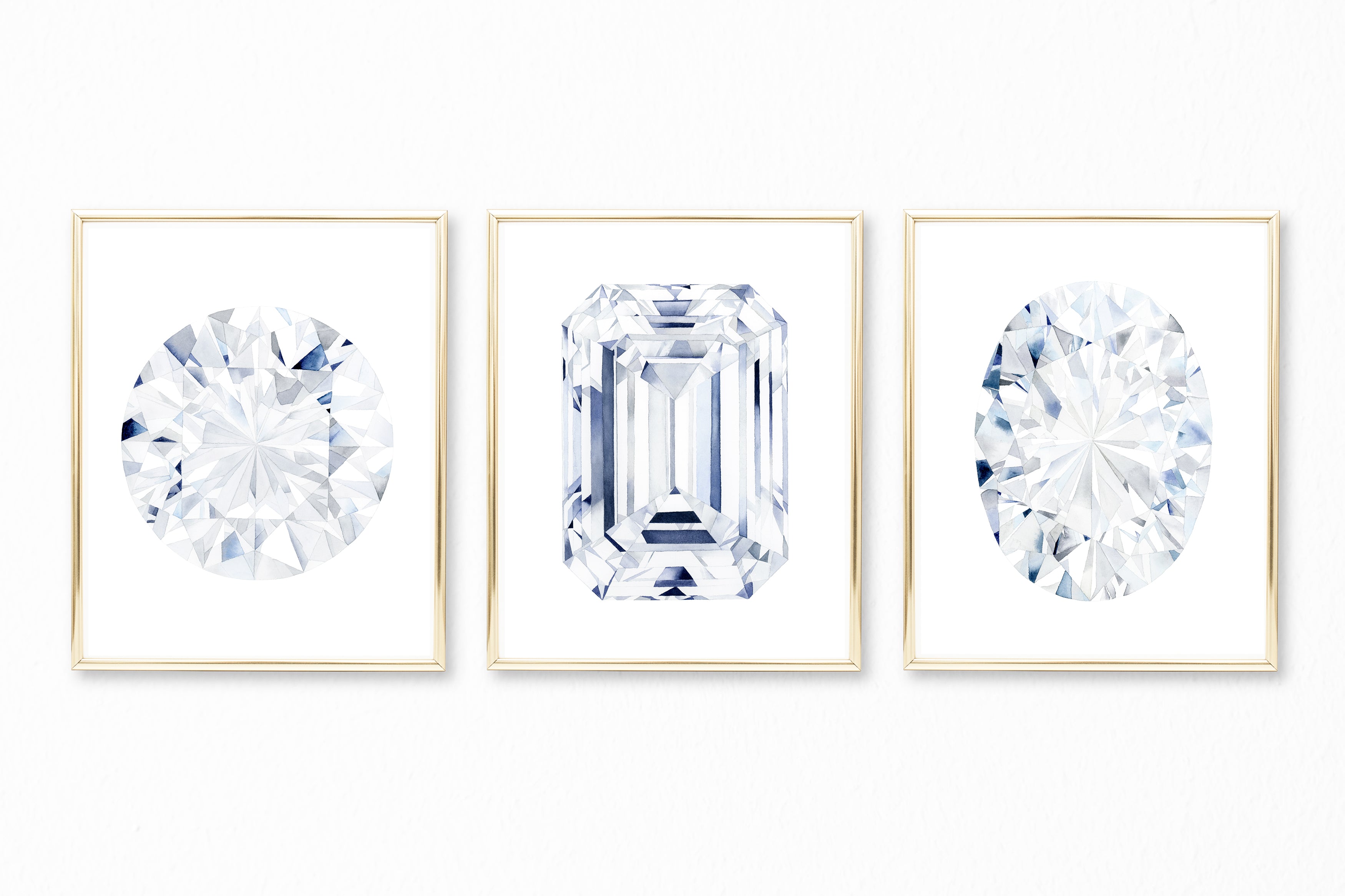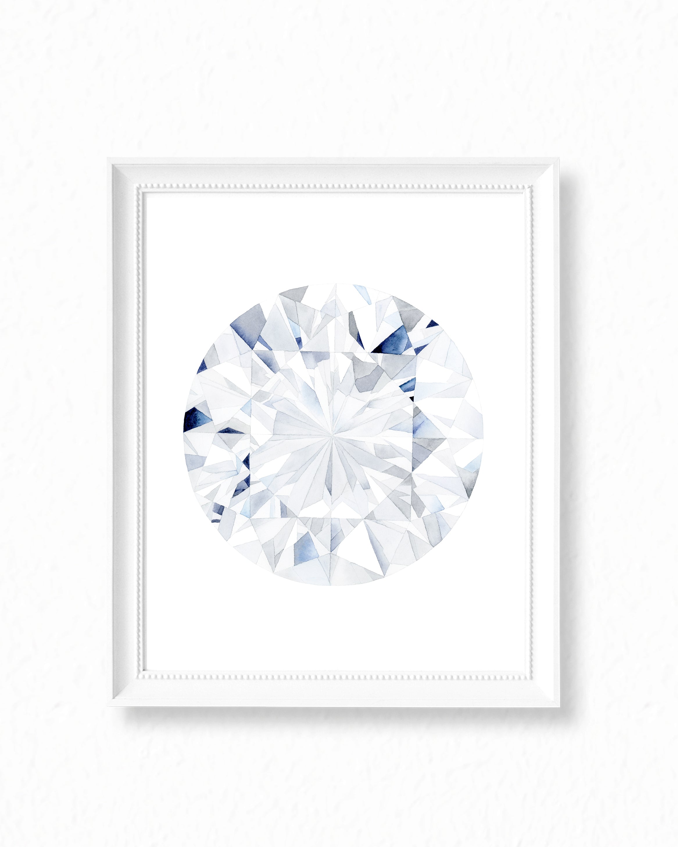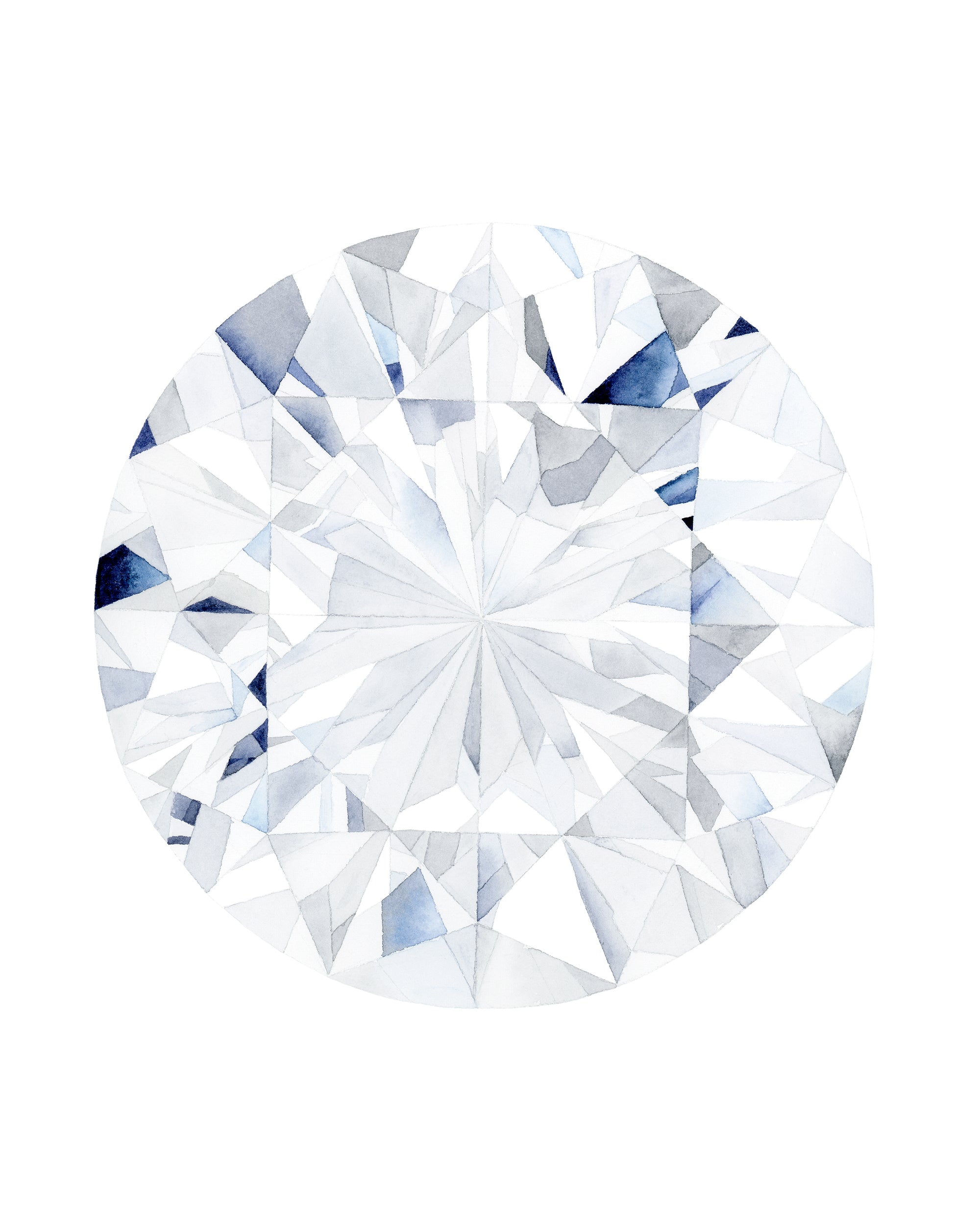 Watercolor painting of a round diamond - round brilliant cut. 1 watercolor art print.
