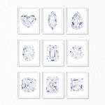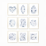 A collection of watercolor diamond paintings in 9 different shapes. The ultimate gallery wall for jewelry lovers.