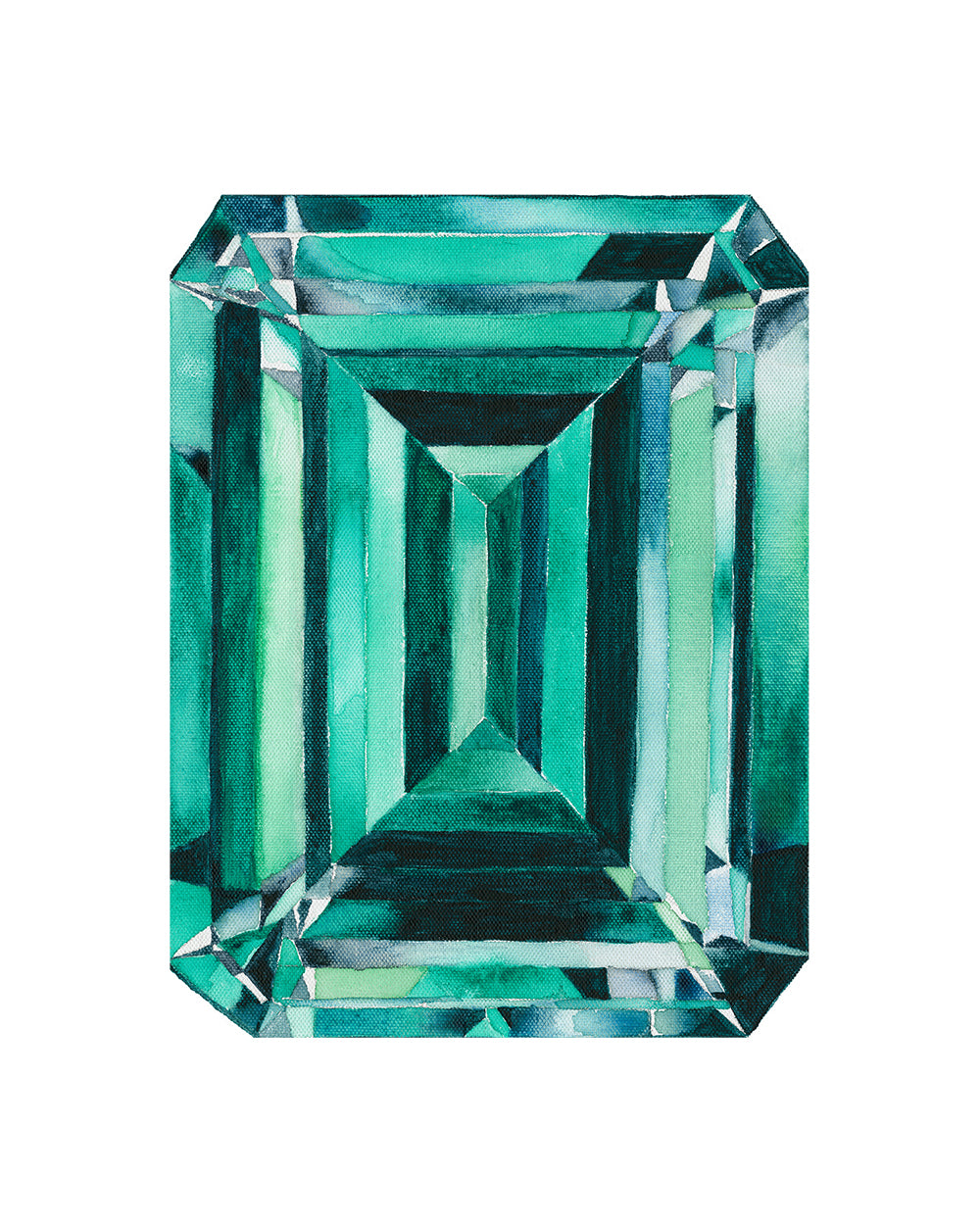 Watercolor painting of an emerald precious gemstone. 1 watercolor art print.