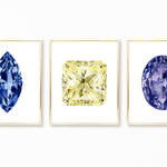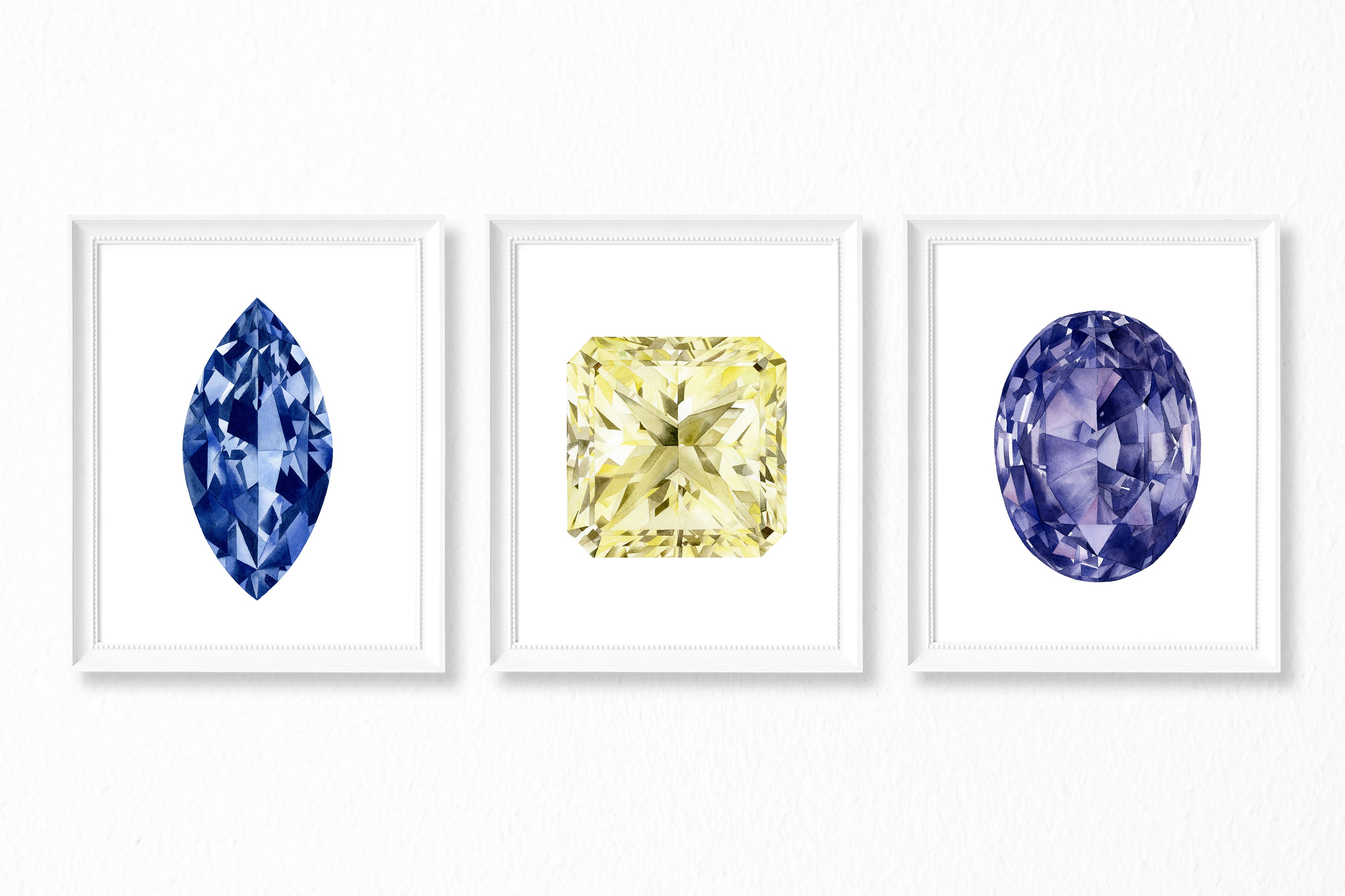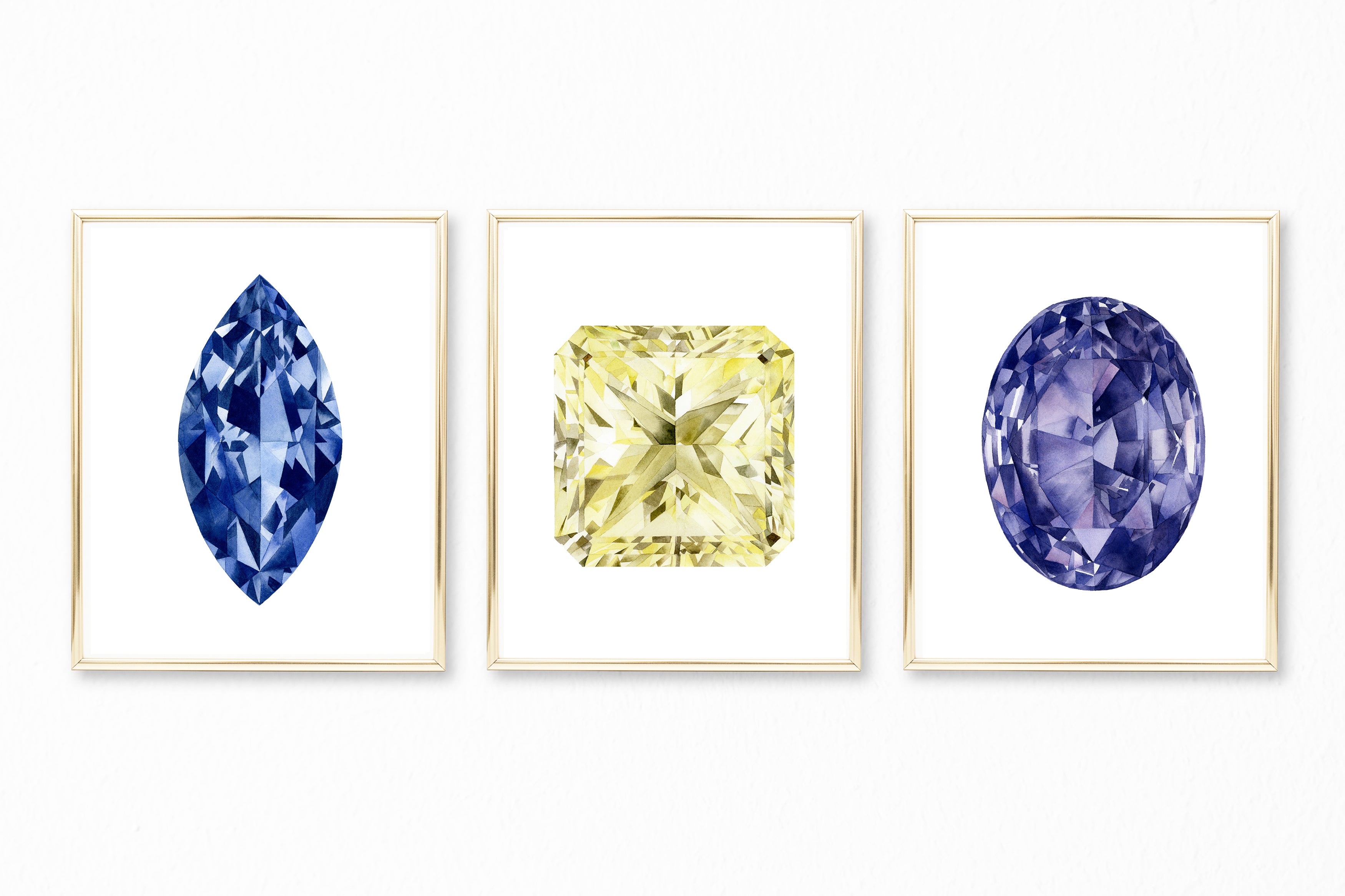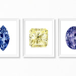 Watercolor Gemstone Paintings - Set of 3 - Sapphire Amethyst Yellow Diamond