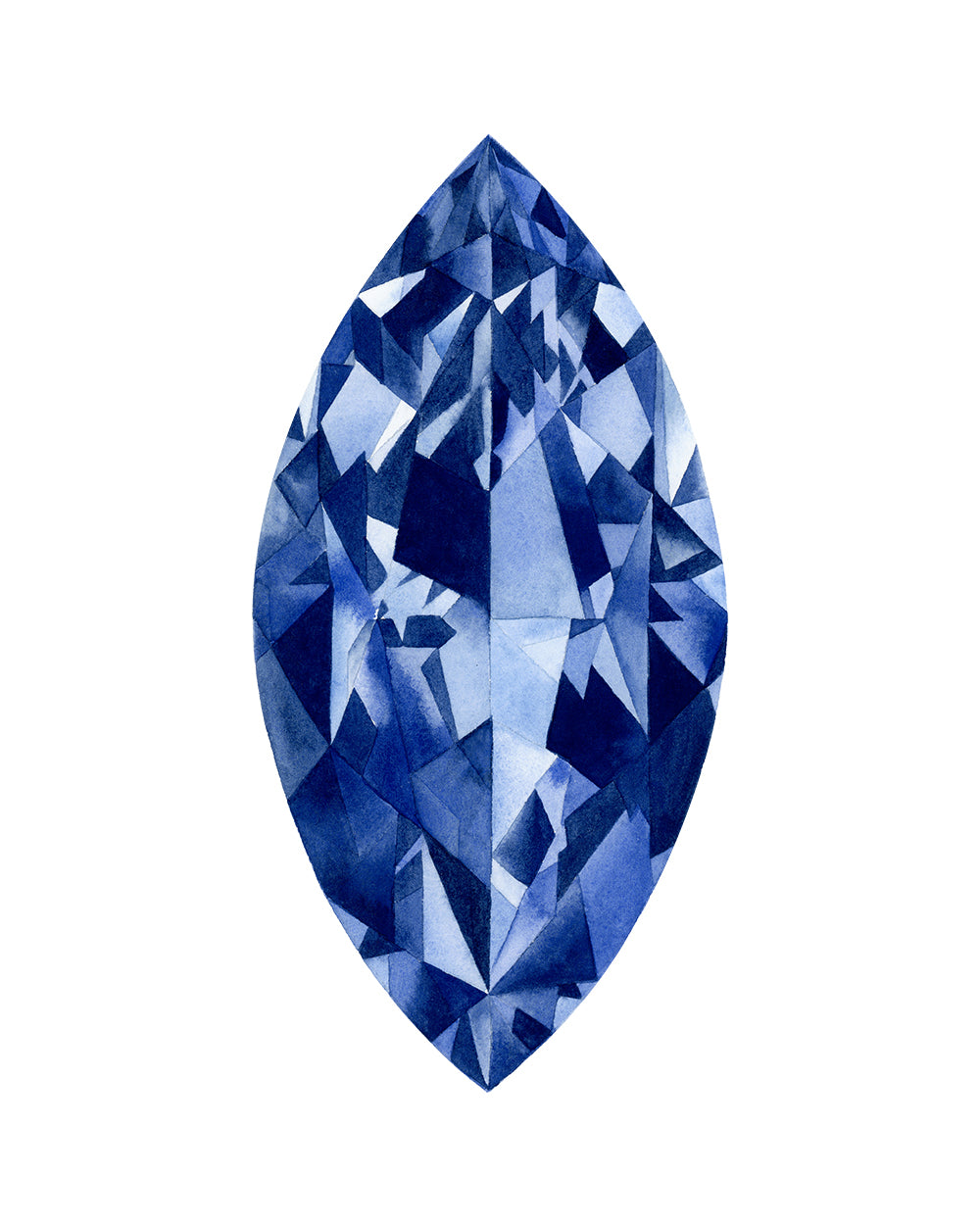 Watercolor Sapphire Marquise Cut Gemstone Painting - Art Print