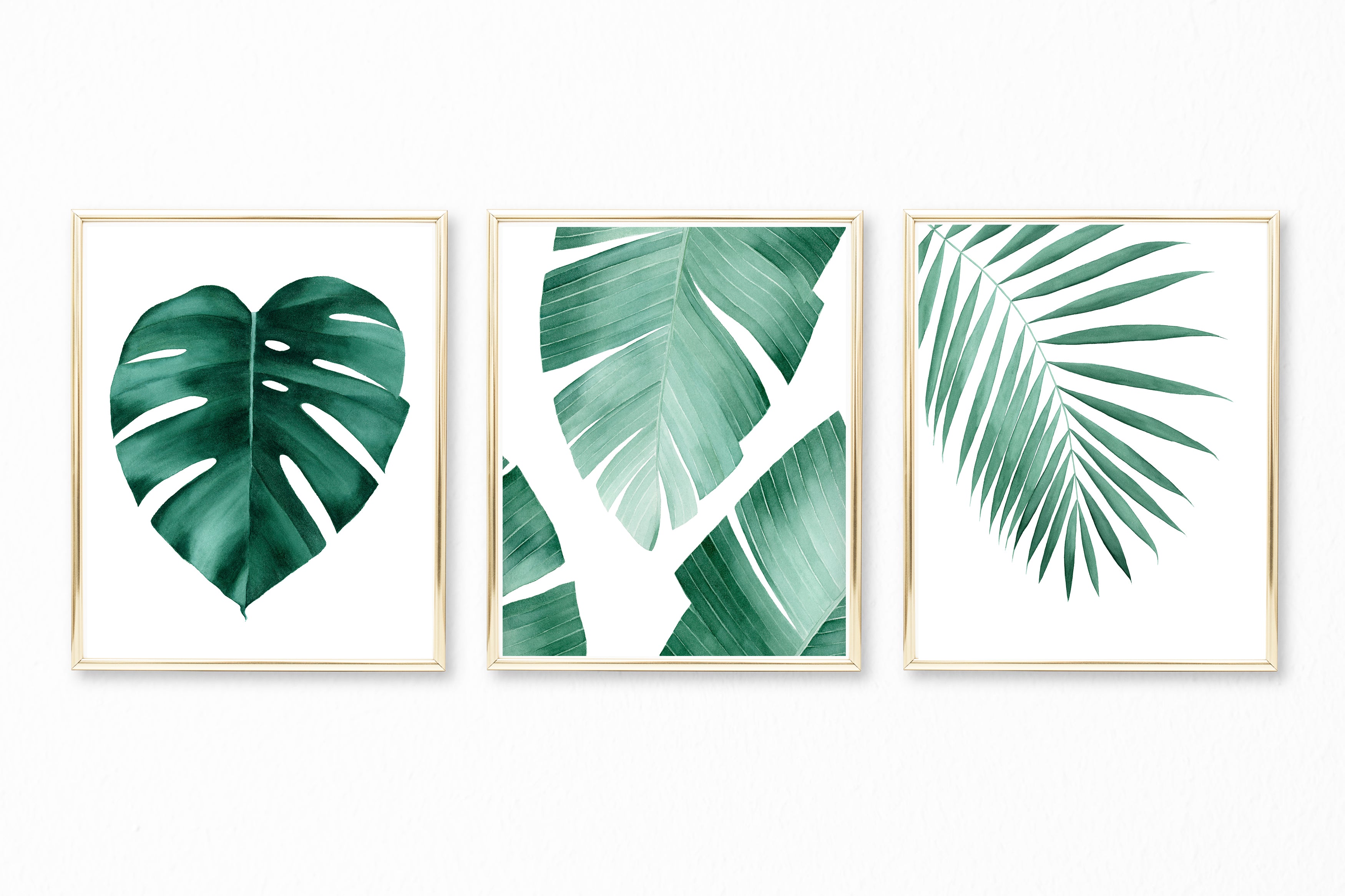 Watercolor Tropical Leaves Paintings - Set of 3 Art Prints