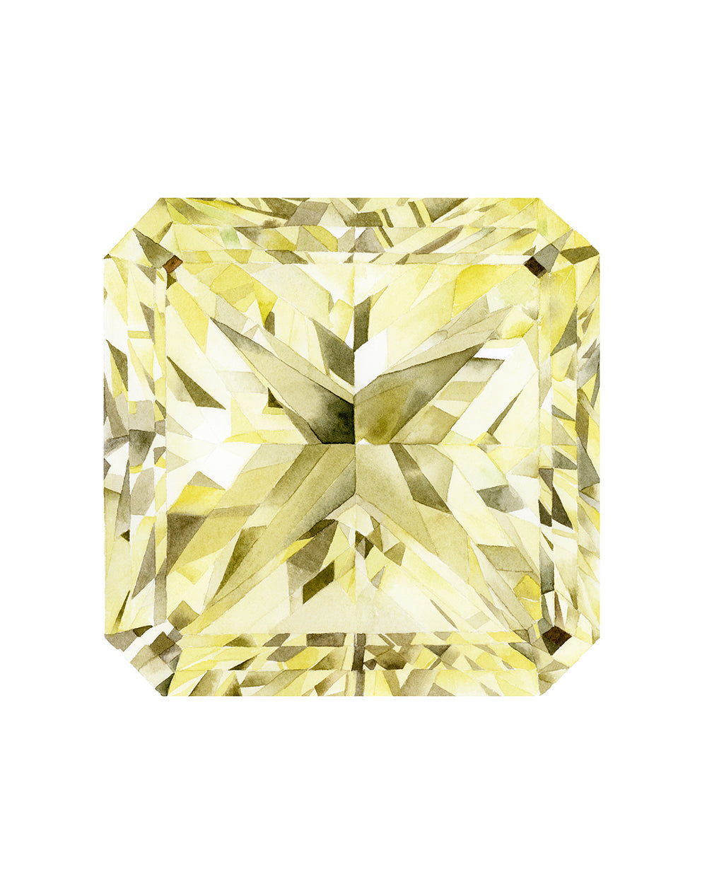 Watercolor painting of a yellow diamond. 1 watercolor art print.